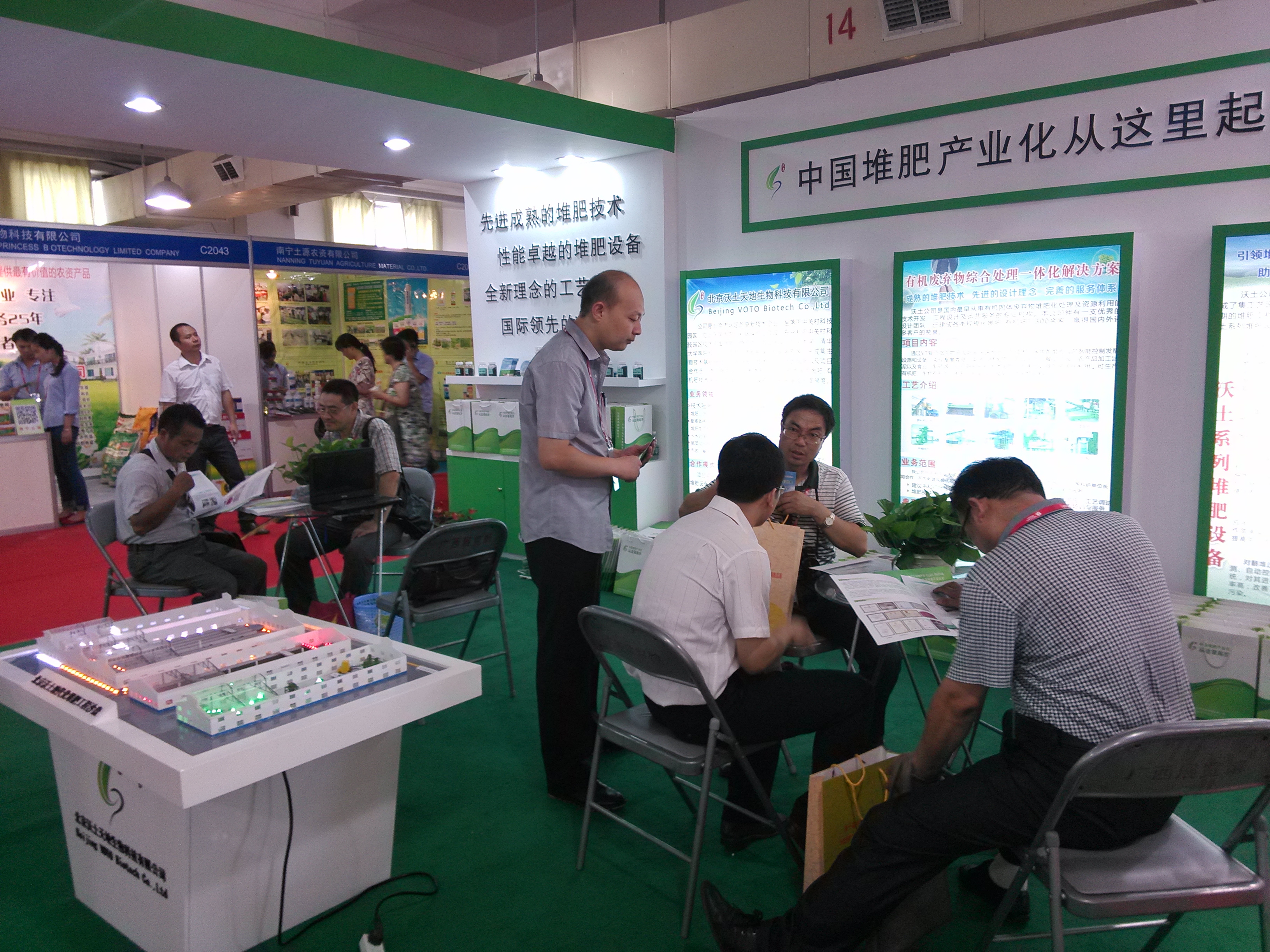 本屆東盟博覽會不僅是博覽會十年大慶,也是中國—東盟建立戰(zhàn)略伙伴關(guān)系十周年。以此為契機,我公司投入大量人財物,對展位進行了周密設(shè)計和精心布置,展示內(nèi)容從沃土堆肥工藝工廠設(shè)計、有機固廢一體化綜合解決方案到VT系列菌劑及堆肥設(shè)備,進行了全方位宣傳,展會期間共接待了中外觀眾上千人,尤其是北京沃土現(xiàn)代化堆肥工程沙盤吸引了眾多觀眾的視線,該沙盤等比例縮小模擬了由本公司設(shè)計及運行的廣西金穗標準化堆肥廠,形象的展示了規(guī)?;醚醵逊蕪S設(shè)計方案及設(shè)備運行實況;在此期間不少客戶還咨詢堆肥快速發(fā)酵菌劑及堆肥設(shè)備,以及不同有機廢棄物原料(畜禽糞便、甘蔗濾泥、尾菜、農(nóng)作物秸稈等)的處理處置方式。