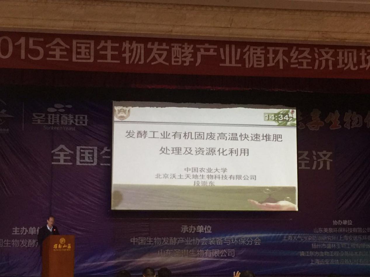 北京沃土天地生物科技有限公司作為特邀嘉賓參加會議,由公司段崇東總工程師就“發(fā)酵工業(yè)有機(jī)廢棄物高溫快速堆肥處理及資源化利用”在會上作報告。