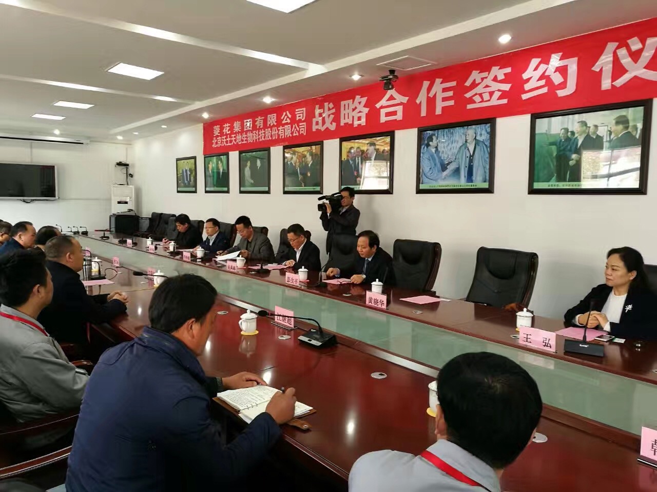 2017年3月25日,菱花集團(tuán)與北京沃土天地生物科技股份有限公司召開(kāi)戰(zhàn)略合作座談會(huì)。參加會(huì)議的代表分別是菱花集團(tuán)董事長(zhǎng)江保安、菱花集團(tuán)總經(jīng)理?xiàng)钣駧X、農(nóng)業(yè)事業(yè)線(xiàn)總經(jīng)理賈治圃及工廠(chǎng)負(fù)責(zé)干部;北京沃土天地生物科技股份有限公司董事長(zhǎng)彭生平、銷(xiāo)售總監(jiān)黃曉華;梁山縣政府侯典峰縣長(zhǎng)及農(nóng)業(yè)局、發(fā)改局、科技局、環(huán)保局、小安山各單位領(lǐng)導(dǎo)。會(huì)議在機(jī)關(guān)事務(wù)局李局長(zhǎng)主持下進(jìn)行。